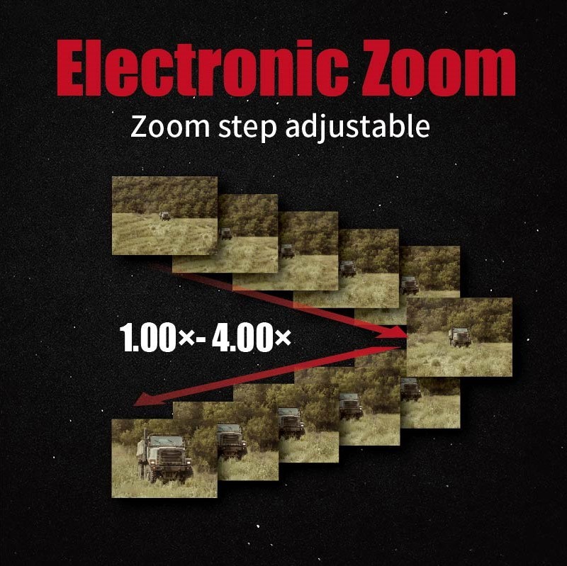 يقدم نطاق تكبير إلكتروني من 1.00x إلى 4.00x ، مما يتيح التركيز الدقيق وتحسين التفاصيل على مسافات مختلفة للتصور الواضح للهدف.